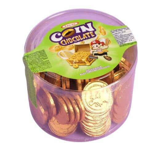 Tayas Coin Chocolate is a 100g treat featuring coin-shaped chocolate pieces. Enjoy the convenience and deliciousness of this delightful chocolate coin.